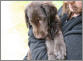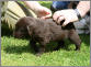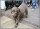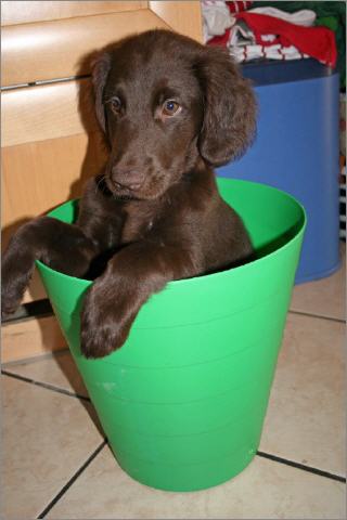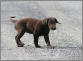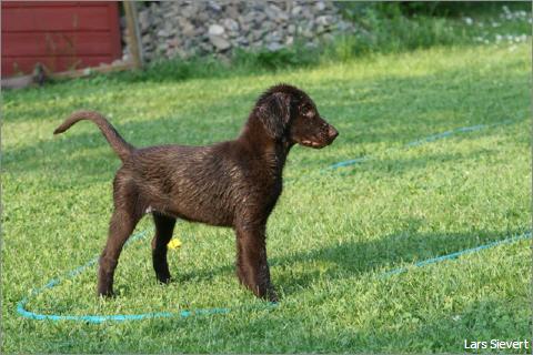7 Monate alte schokoladfarbene Hündin, sehr gut geschnittener Kopf, sanfter Ausdruck, gute Halslänge, schräge Schulter, schöne Front, gerade Oberlinie, sehr gute Winkelungen, Gebäude dem Alter entsprechend schon gut entwickelt, geschlossene Pfoten, bewegt sich sehr gut, super vorgeführt.