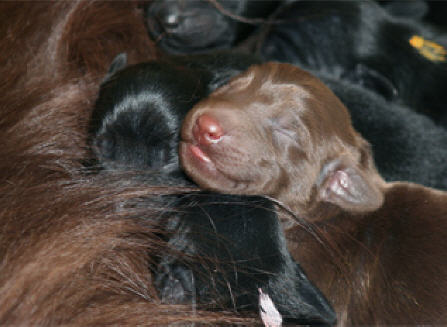 3 Rüden schwarz, 3 Hündinnen schwarz, 2 Hündinnen liver